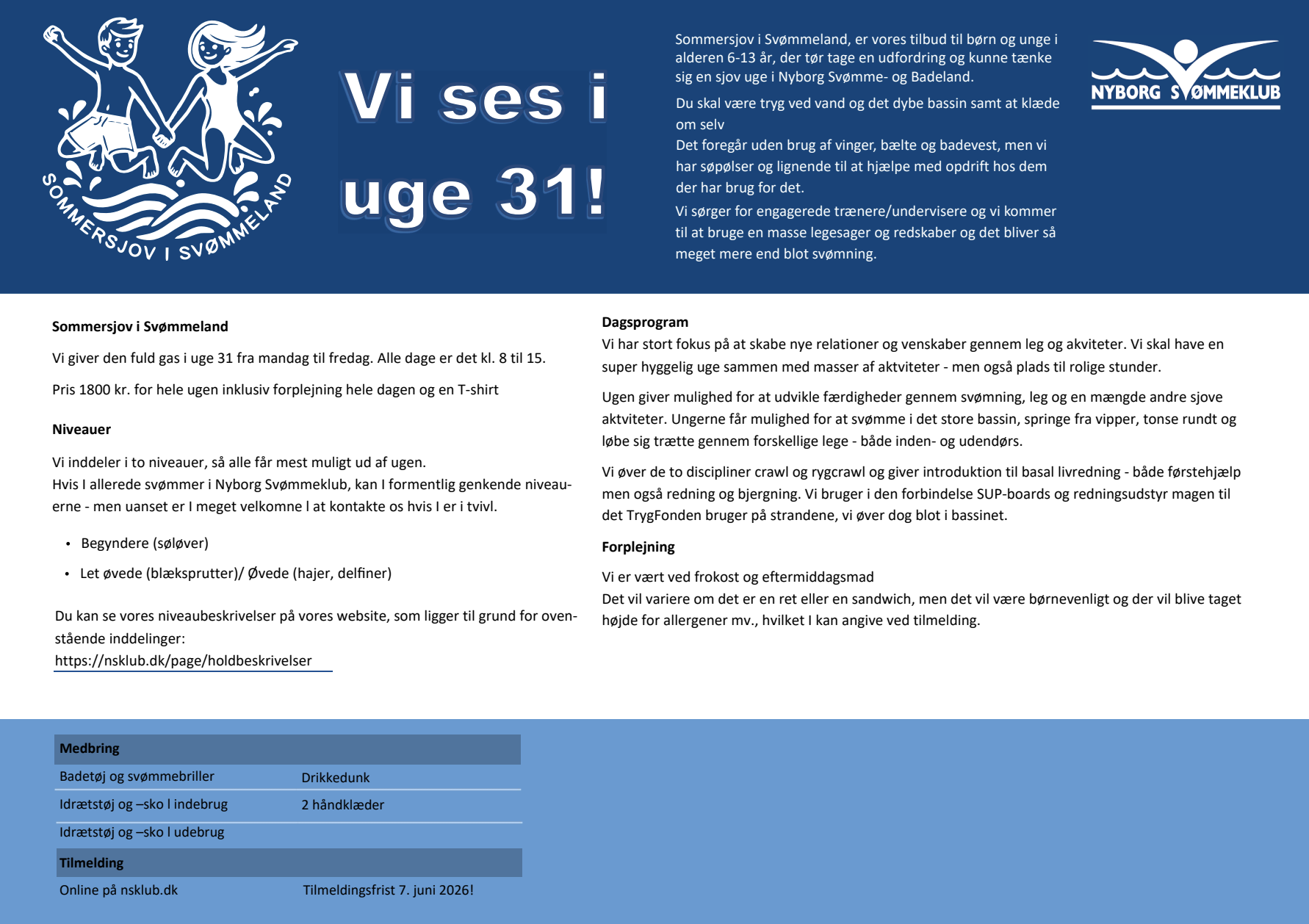 Hvis I svømmer i svømmeskolen, kender I niveauerne derfra - og ellers kan der læses mere om dem her.